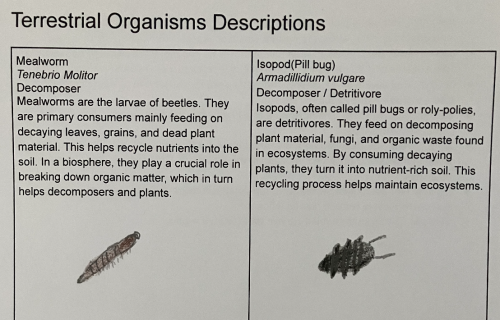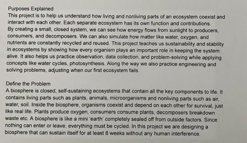 Ecology Science Biosphere Project November 24, 2025 By Timothy Y. (9th) & Chloe Y. (7th) Post Views: 13 Post navigation Previous Previous post: Help the unhoused during the Rainy days!
