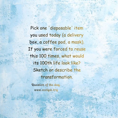 Environmental & Sustainability Question Of The Day Question of the Day: 100th Time of ‘Disposable” Item April 7, 2026 Share your thoughts by fill out the form below or go to this link: Form Post Views: 4 Post navigation Previous Previous post: Roots to Routes: Watt-Wise StridesNext Next post: Roots to Routes: Beyond the Finish Line